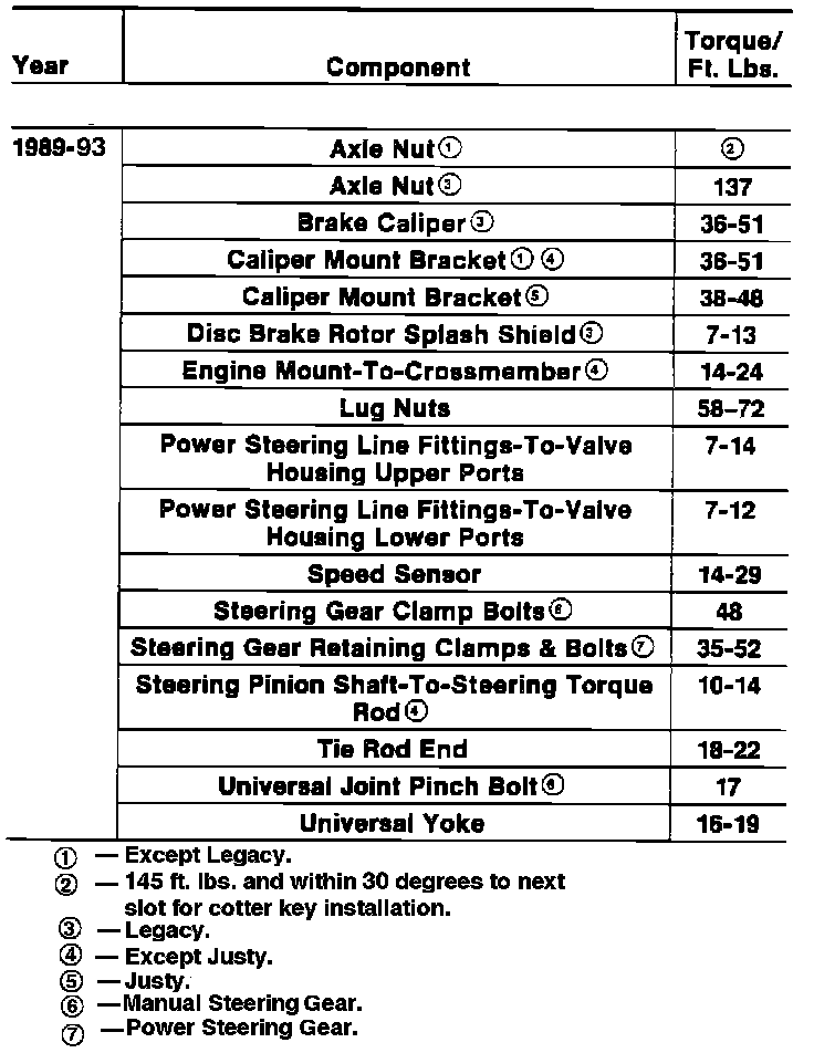 Tightening Specifications: