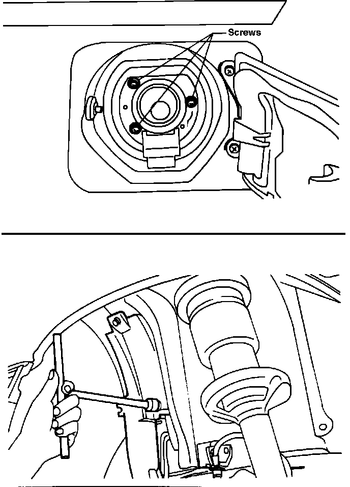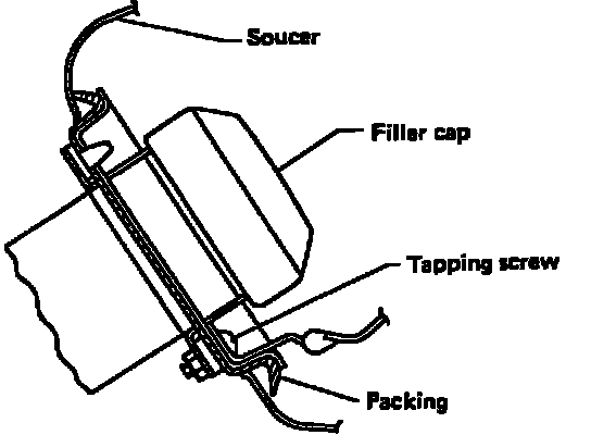 6. Install protector together with fuel filler pipe. Check to make sure that hoses and clamps have adequate clearance.