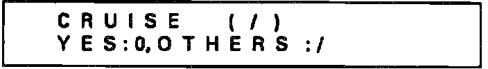 d. Pressing ``O'' will convert display to read as shown in Fig. 9. If cruise main switch is Off, error 2 will appear. Turn cruise main switch On and repeat procedure.