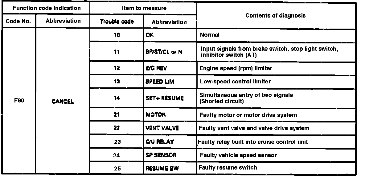Fig. 12 Trouble Code Identification And Description (Cruise Cancel Diagnosis):