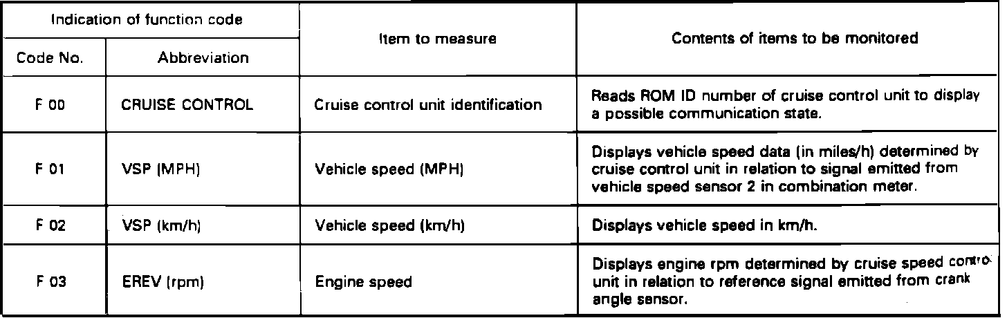 4. If cruise speed is cancelled itself (without doing any cancel operations), a trouble code will appear on select monitor display.