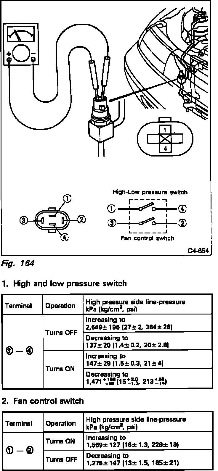 Refrigerant Pressure Sensor / Switch: Testing and Inspection