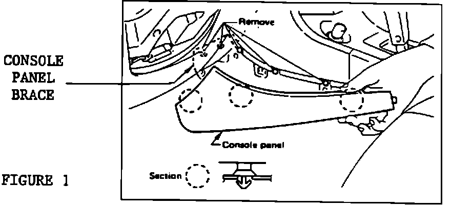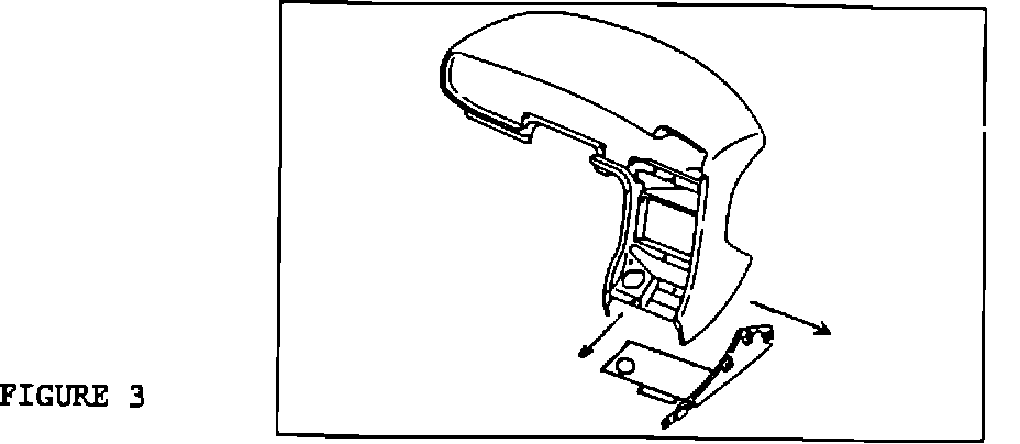 14. REMOVE THE RIGHT CONSOLE BRACE, SLIDE IT BACK TOWARDS THE SHIFTER AND OUT TO THE RIGHT, REFER TO FIGURE 3.
