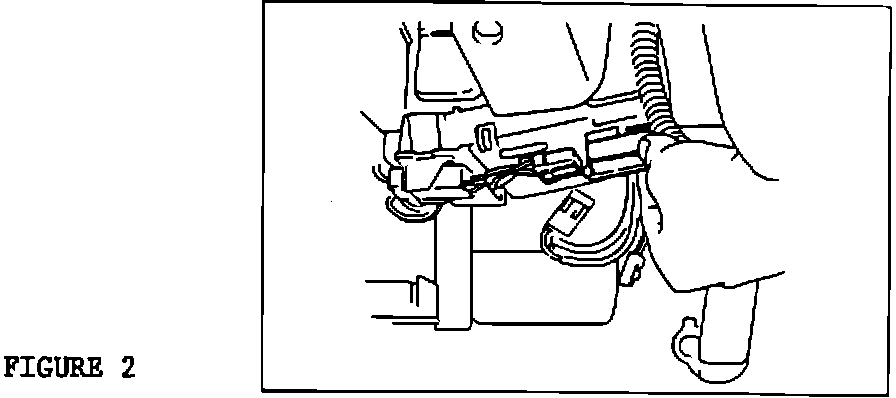 9. DISCONNECT THE YELLOW AIRBAG CONNECTOR BELOW THE STEERING COLUMN, REFER TO FIGURE 2. DO NOT RECONNECT AIRBAG CONNECTOR UNTIL AIRBAG CONTROL UNIT IS SECURELY RE-INSTALLED.
