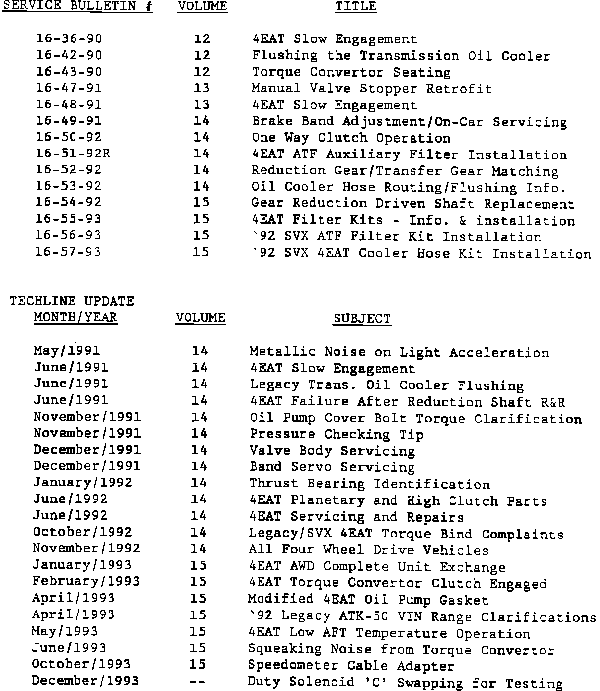 ALL LEGACY, SVX AND IMPREZA MODELS EQUIPPED WITH 4EAT TRANSMISSION
