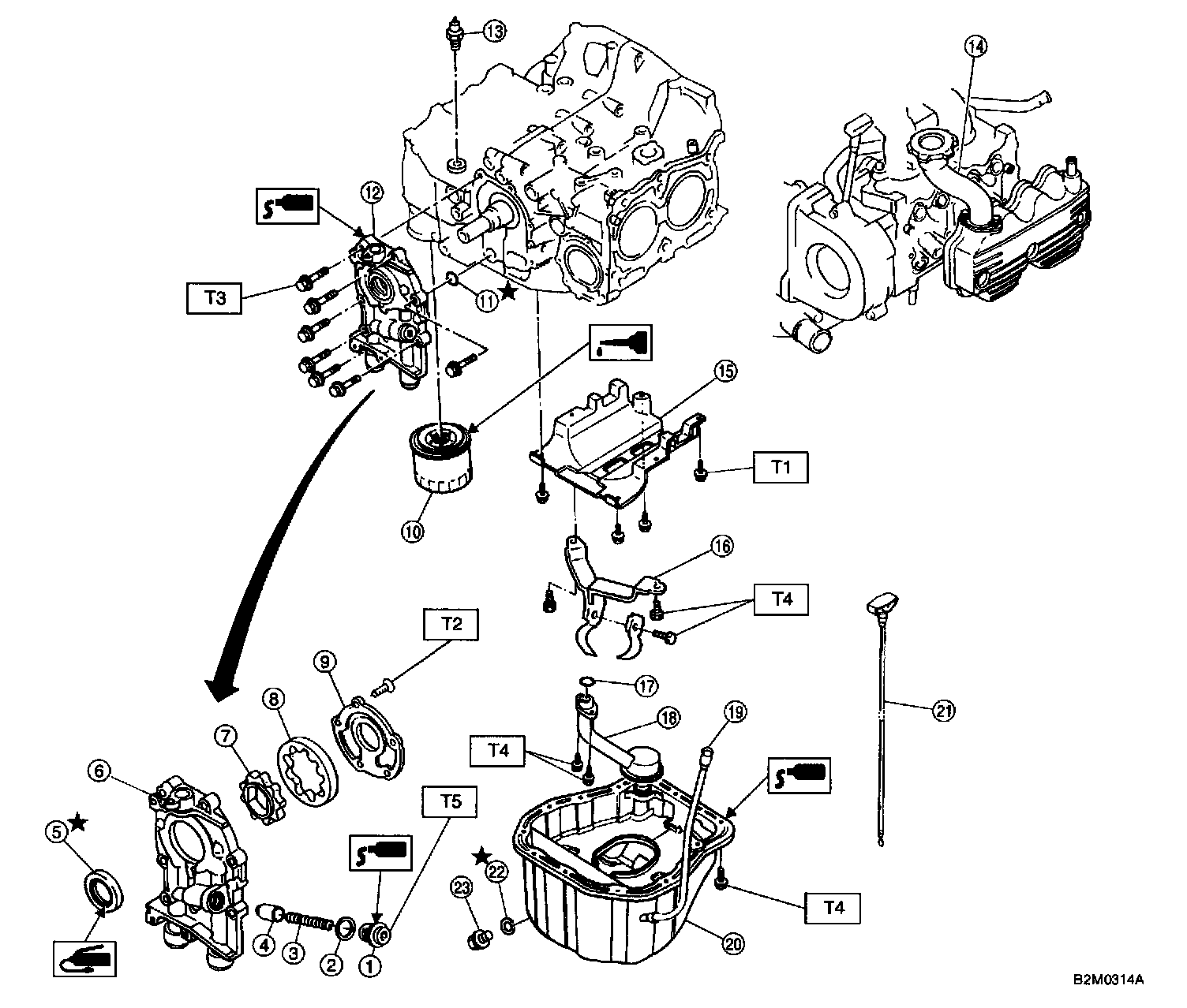T2: 5+1-0 N-m (0.5+0.1-0 kg-m, 3.6+0.7-0 ft-lb).