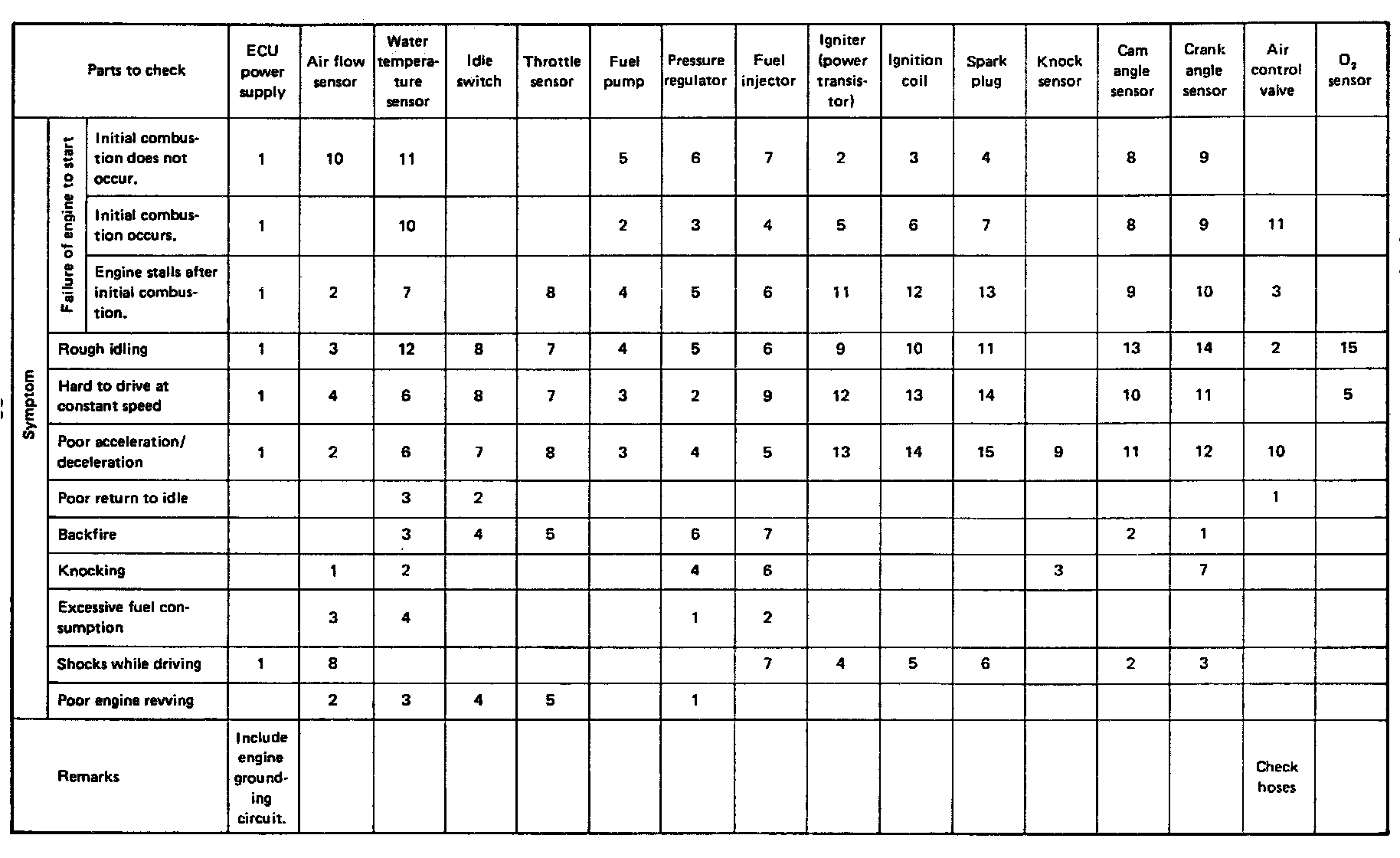 Priority of "parts to check" is shown by figures (1, 2, 3,......14).