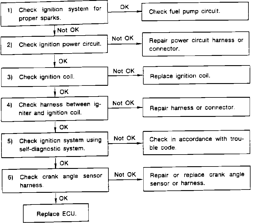 The following procedure should be used to check for a "NO SPARK" condition. Refer to the schematic diagram and test the circuit with the diagnostic chart.