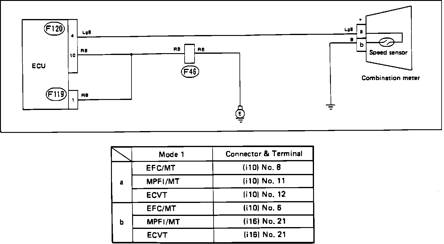 [1] Refer to VEHICLE SPEED SENSOR DIAGNOSTIC CHART to determine which pins are "a" and "b."