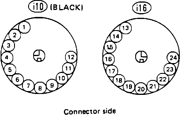3. Measure resistance between ECU connector and ground, and between combination meter connector and ground. Readings should be as follows: