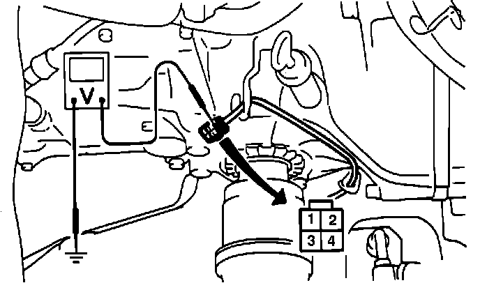2. Measure voltage between oxygen sensor terminal #4 and ground.