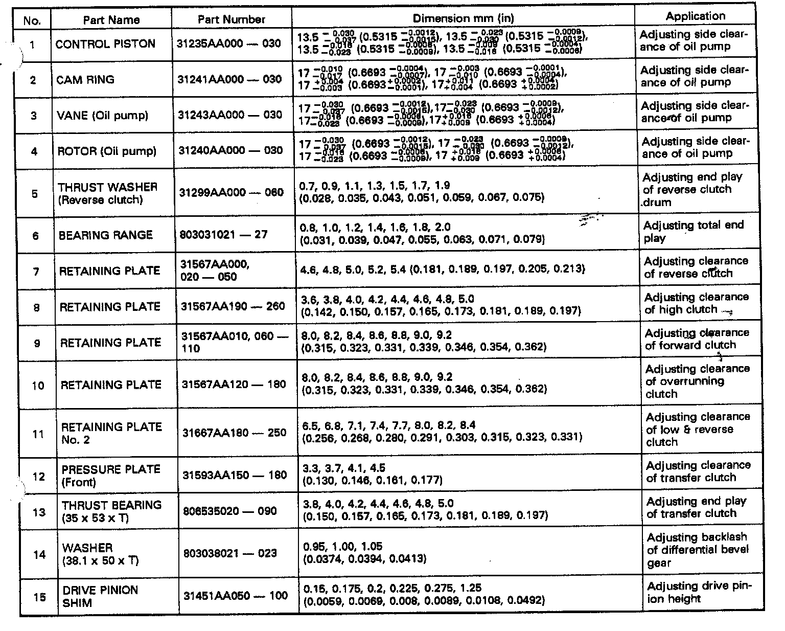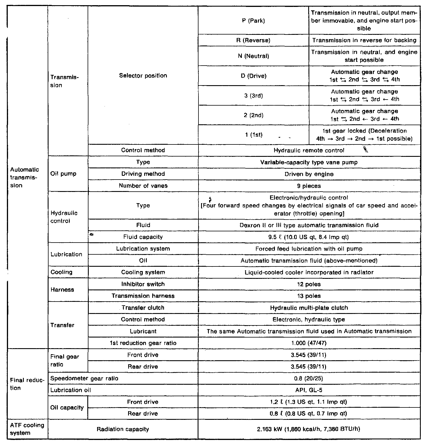 4-spd A/T, Transmission & Final Reduction Service Data: