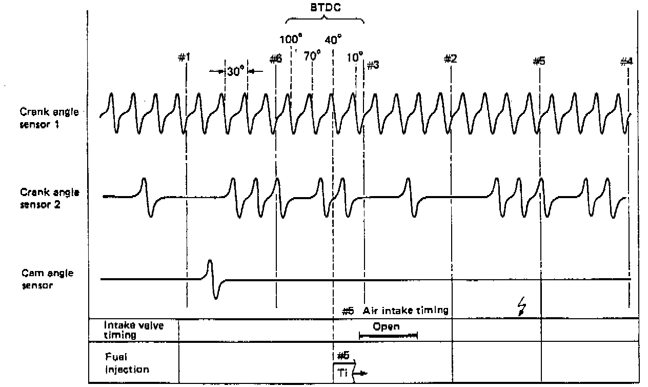 As for injection timing, the ECU controls the starting of injection with leading to the signal emitted from crank angle sensor 1.