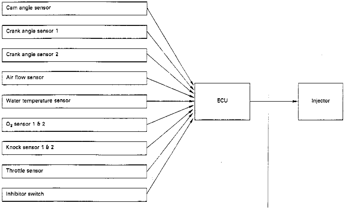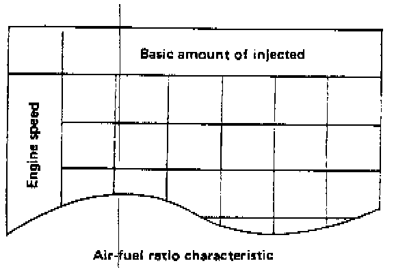 ^ Basic duration of fuel injection The basic length of time fuel is injected. This is determined by two factors--the amount of intake air detected by the air flow sensor and the engine speed (rpm) monitored by the crank angle sensor.
