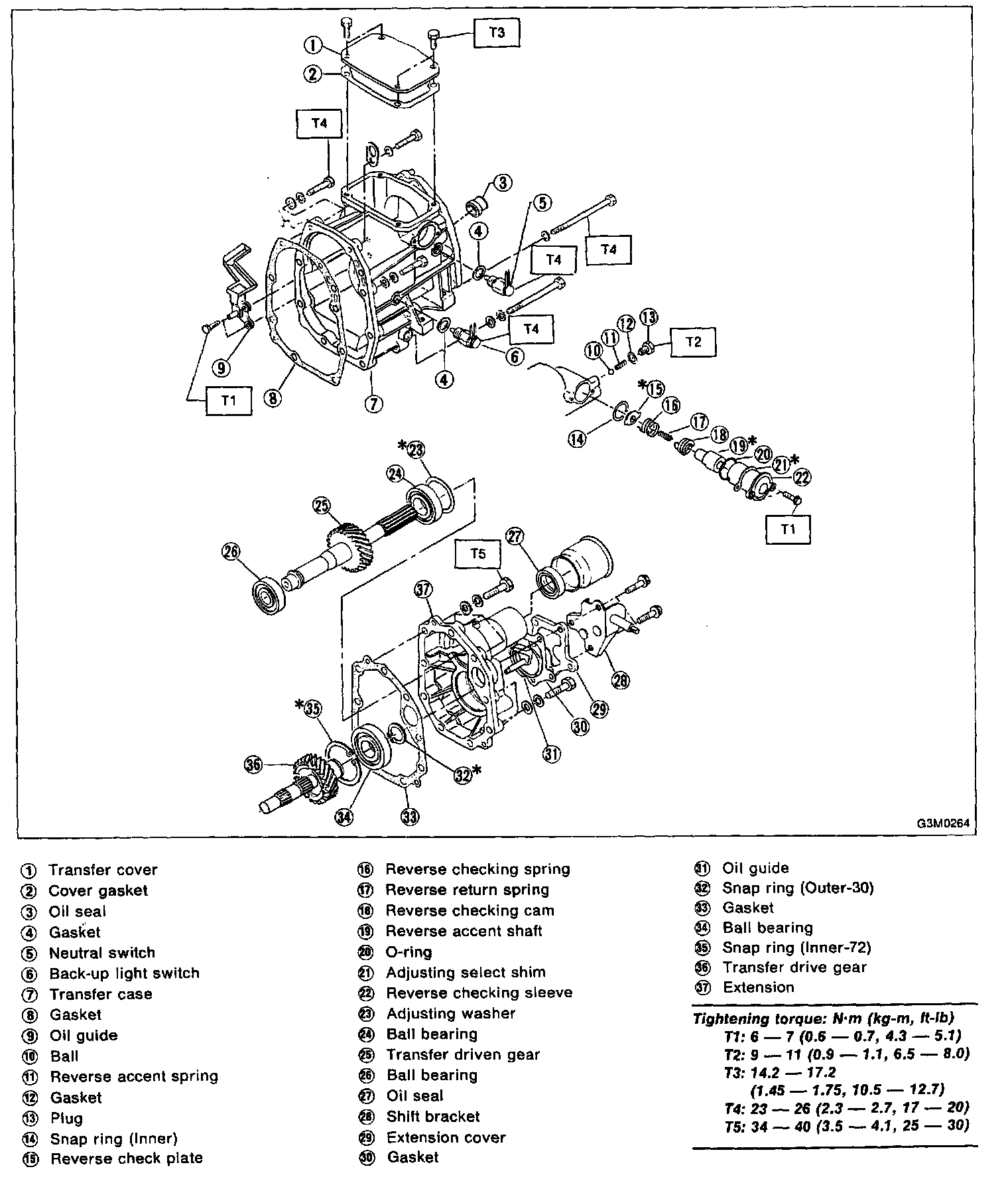 5-spd M/T, Transfer Case & Transmission Extension (AWD):