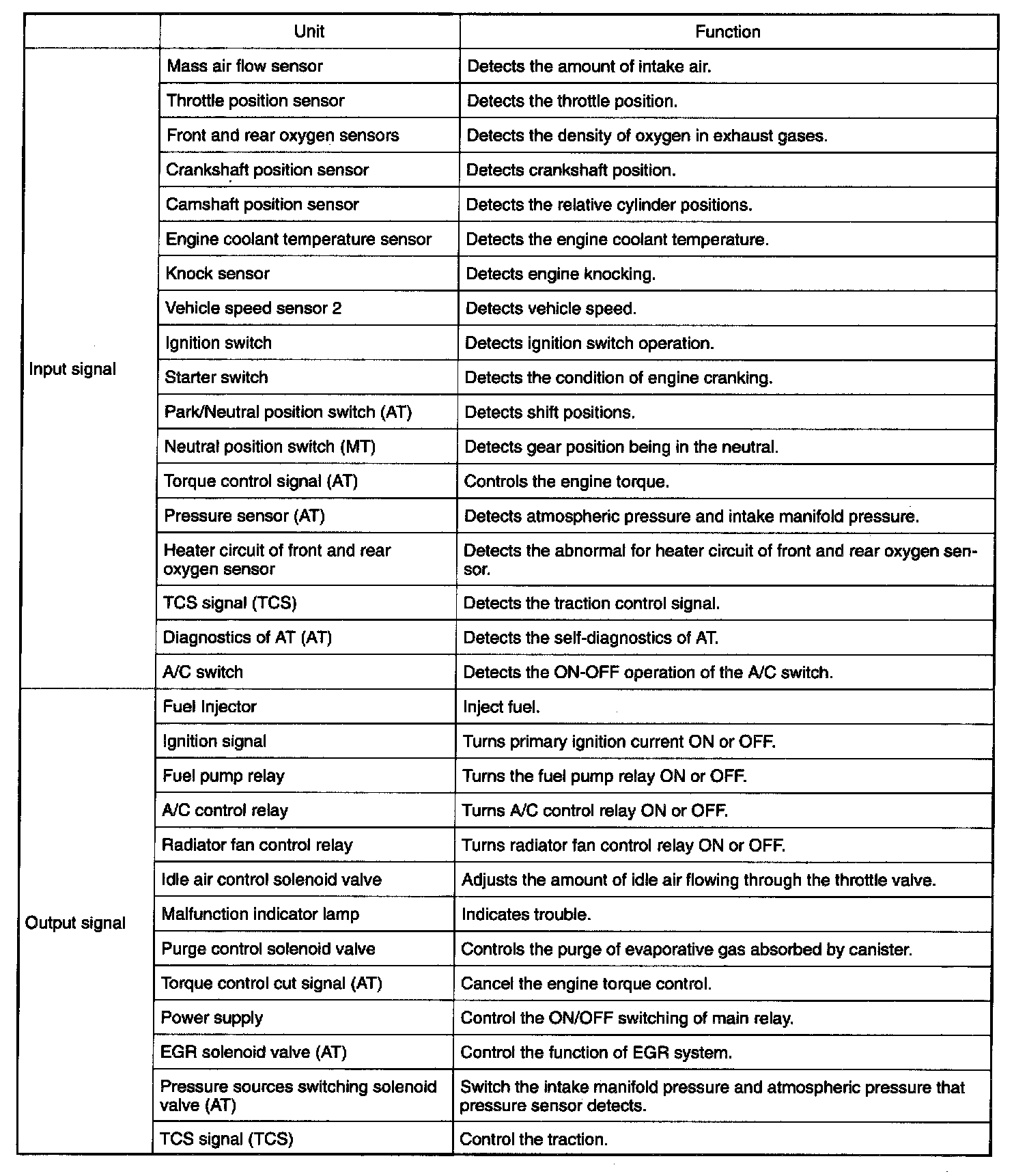 Input and Output Signals