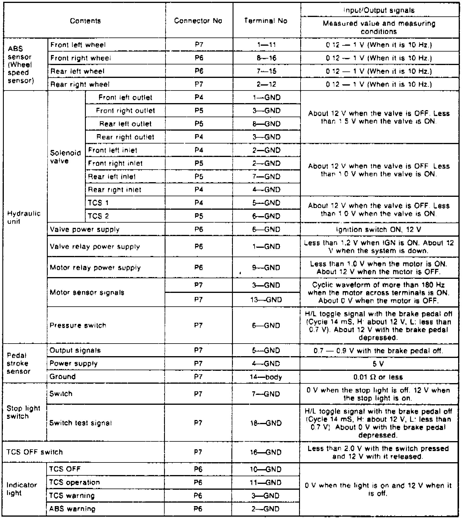 Fig. 11 ABS/TCS Control Module Pin Voltage Specifications (Part 2 Of 2):