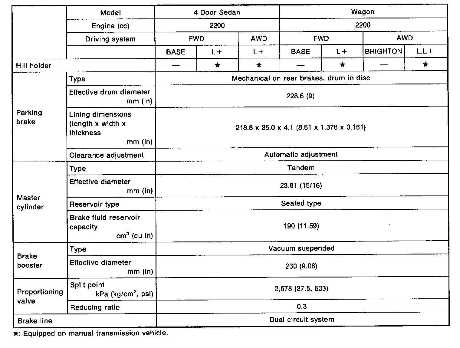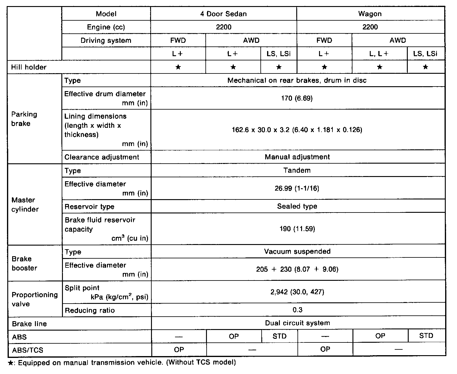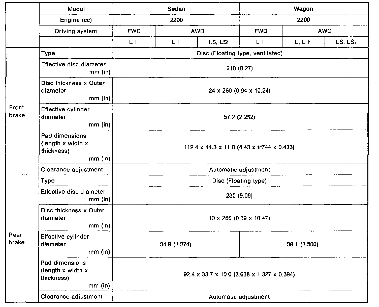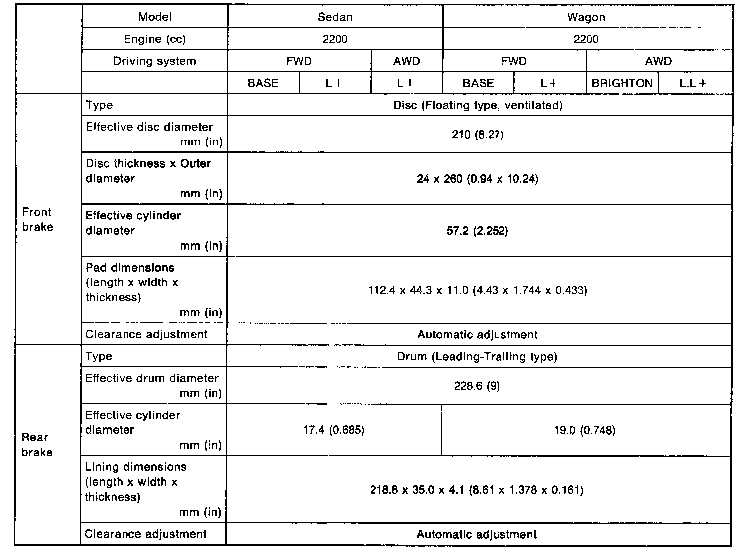 Legacy Sedan 2WD F4-2.2L SOHC