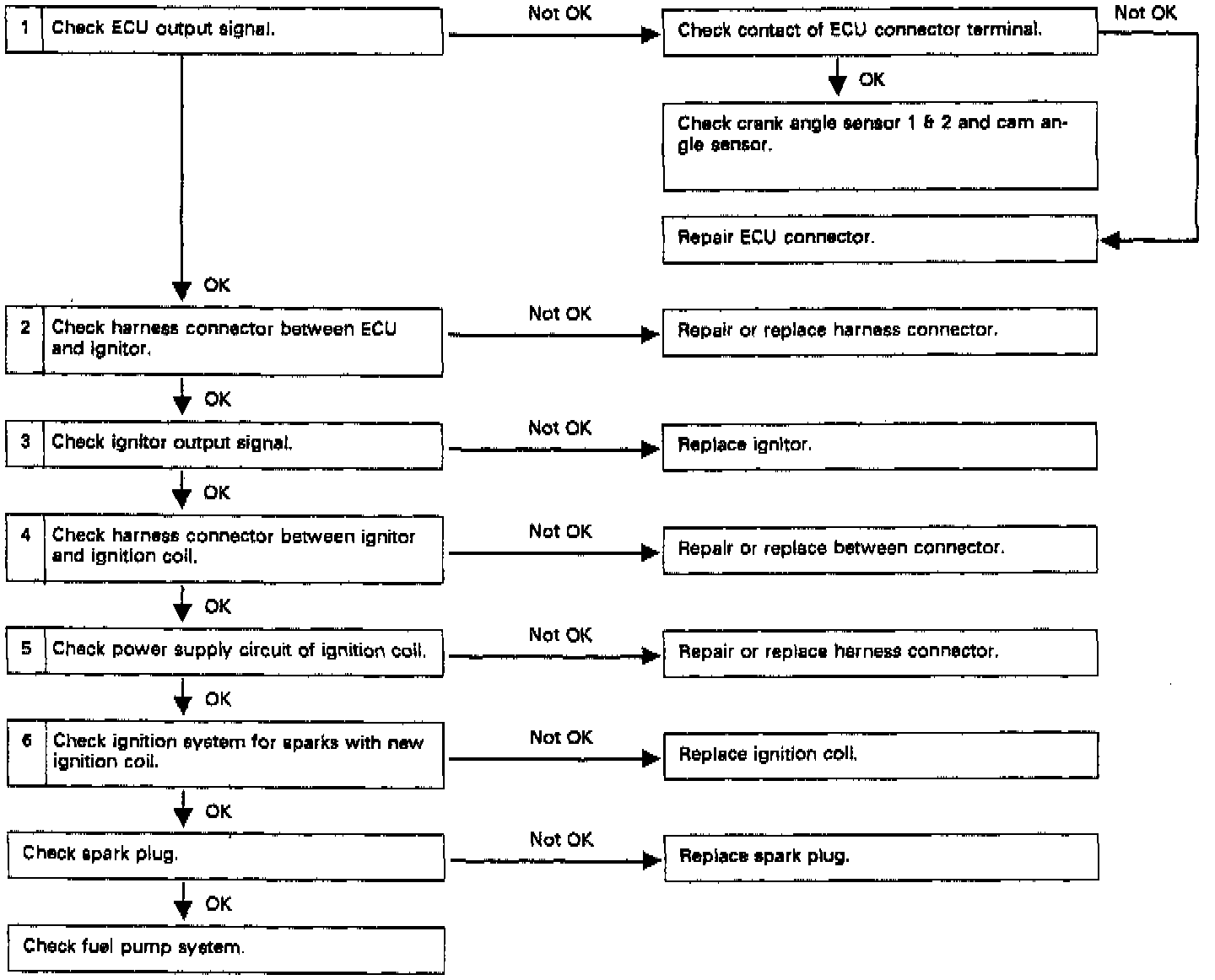 2. CHECK HARNESS CONNECTOR BETWEEN ECU AND IGNITOR.