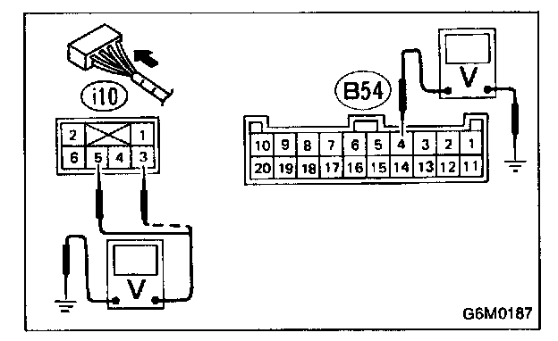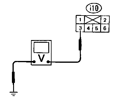 Turn ignition switch ON and measure the voltage between the fuse box connector and the body.