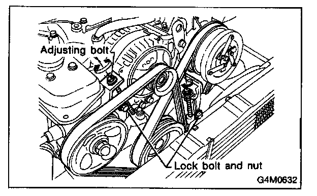 After adjusting V-belt tension, tighten generator bracket lock bolt securely.