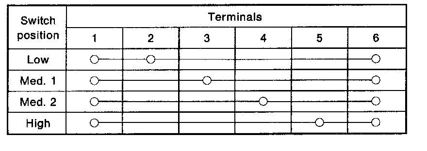 Check continuity between terminals at each switch position.