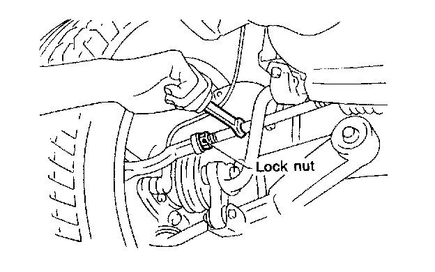 2) Turn the left and right tie rods equal amounts until the toe-in is at the middle value of specifications.