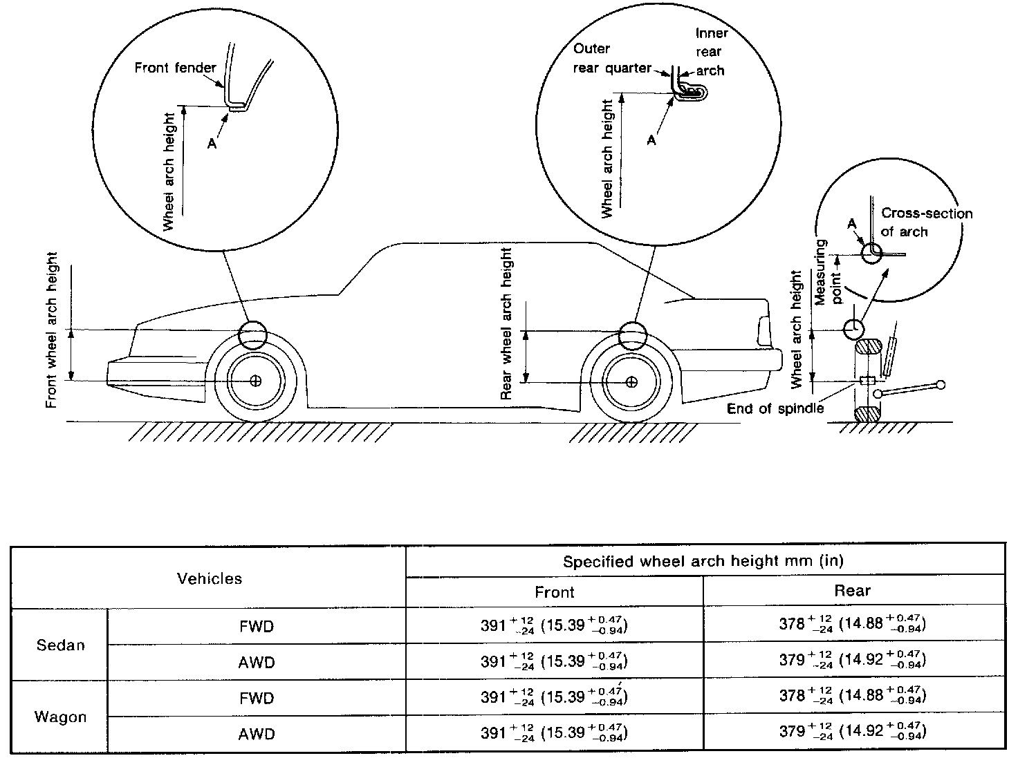 2) Set vehicle under "curb weight" conditions. (Empty luggage compartment, install spare tire, jack, service tools, and top up fuel tank.)