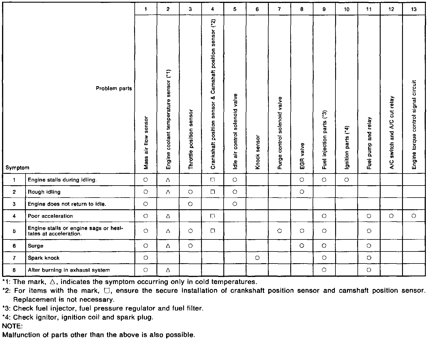 GENERAL DIAGNOSTICS TABLE FOR ENGINE