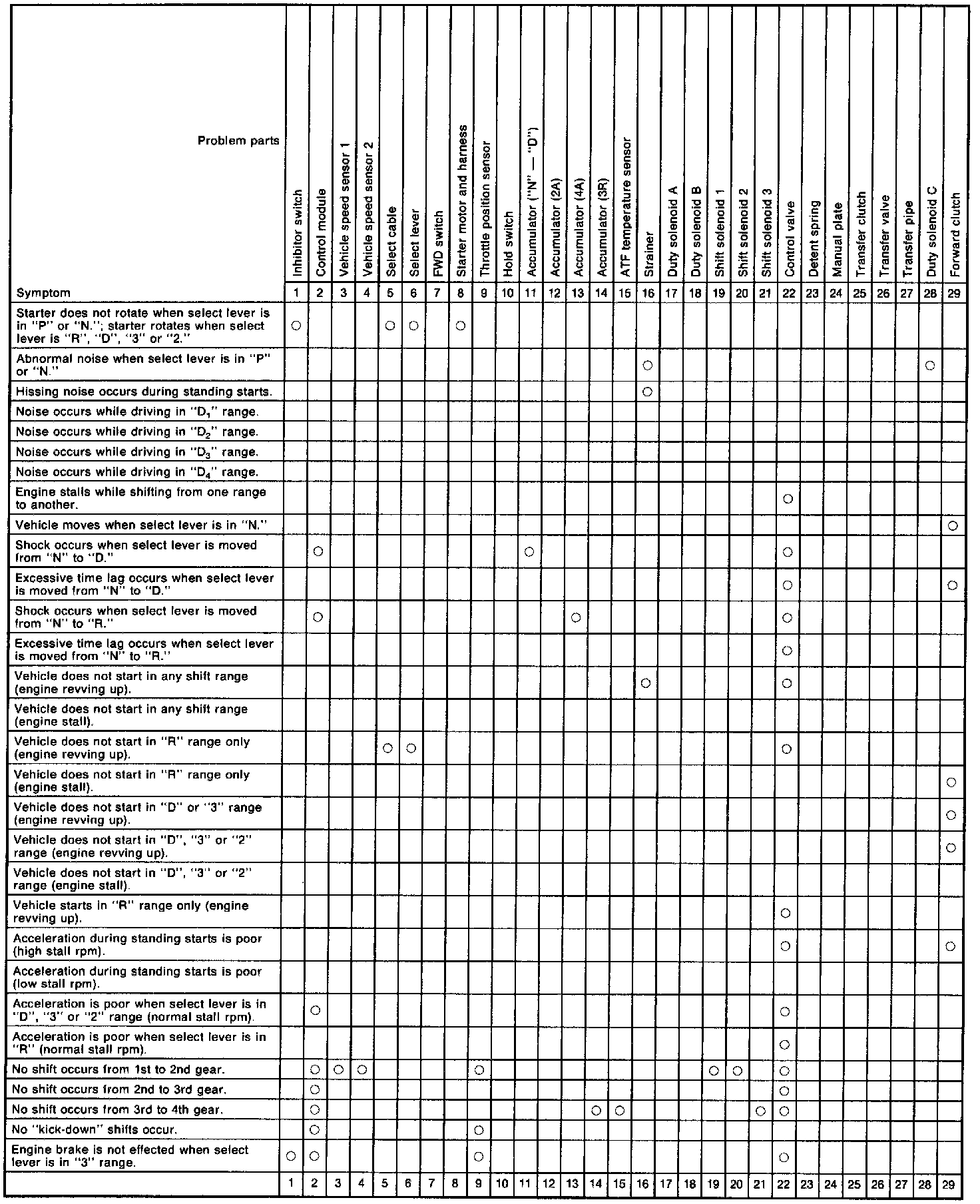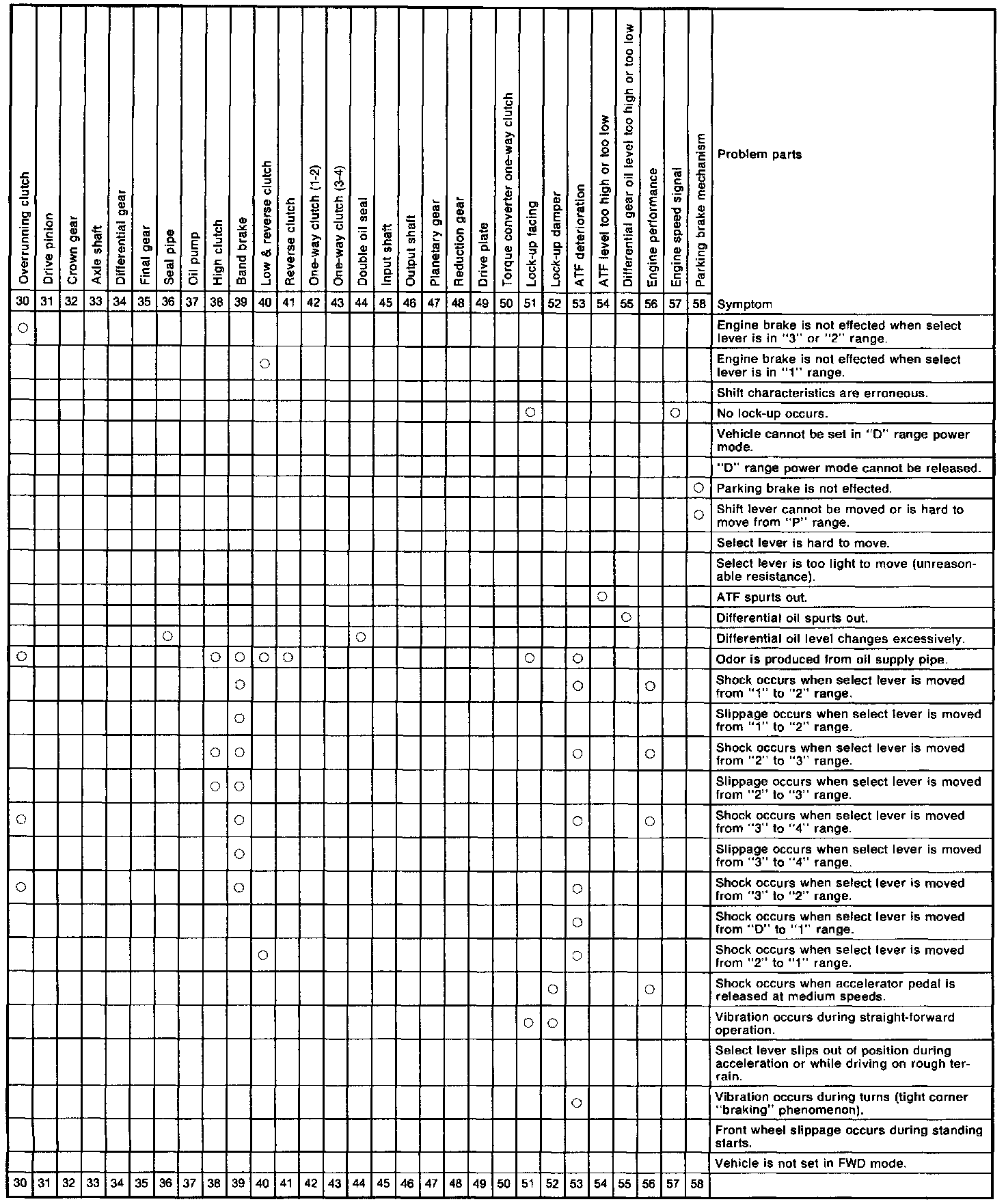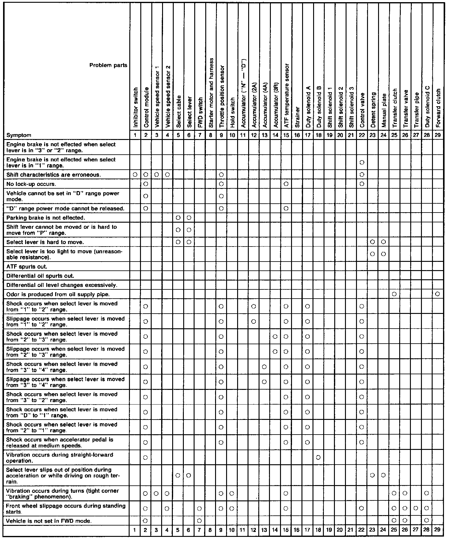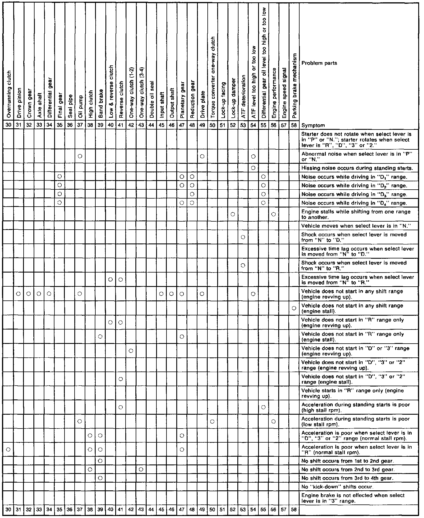 GENERAL DIAGNOSTICS TABLE FOR AUTOMATIC TRANSMISSION