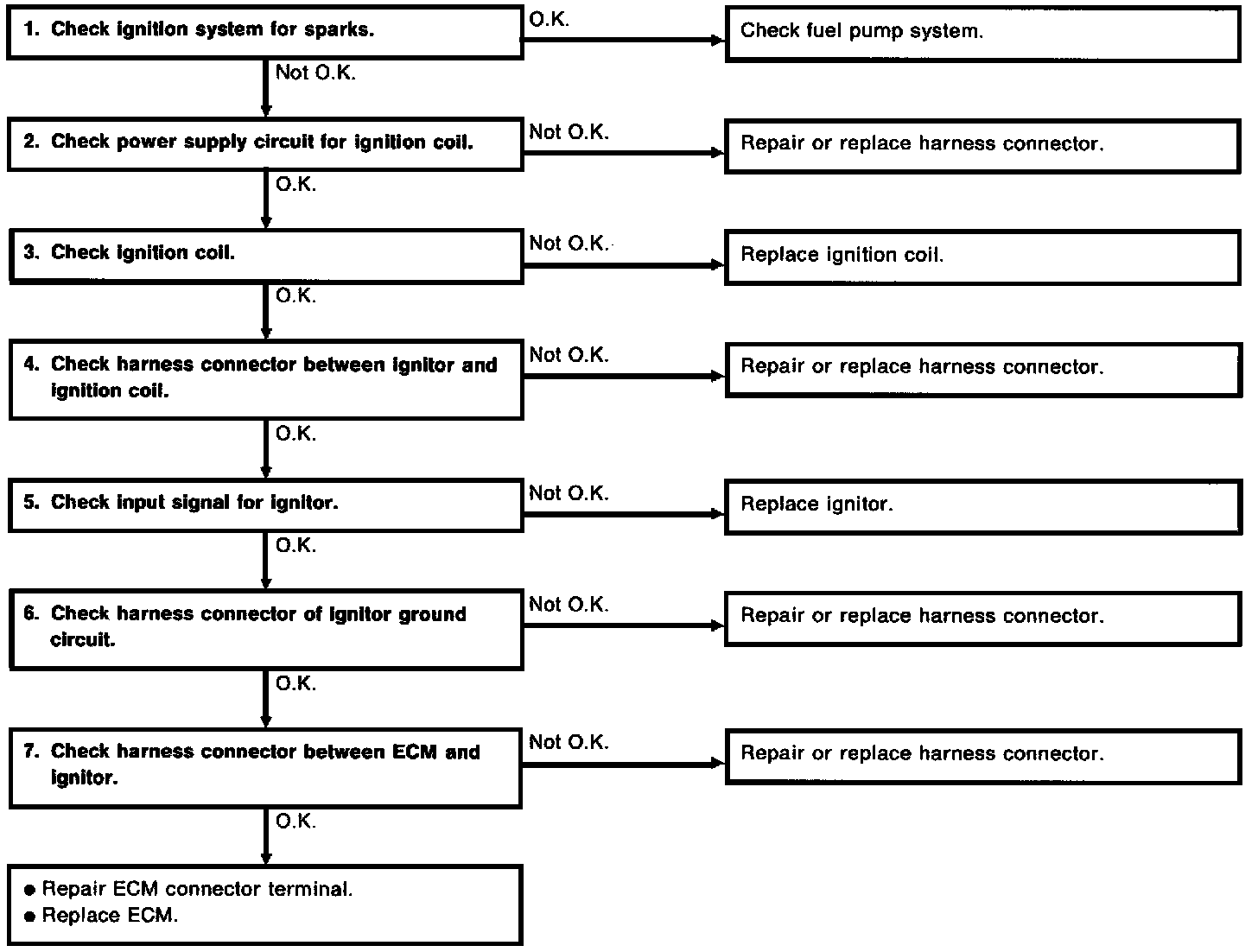 IGNITION CONTROL SYSTEM1. Check Ignition System for sparks.