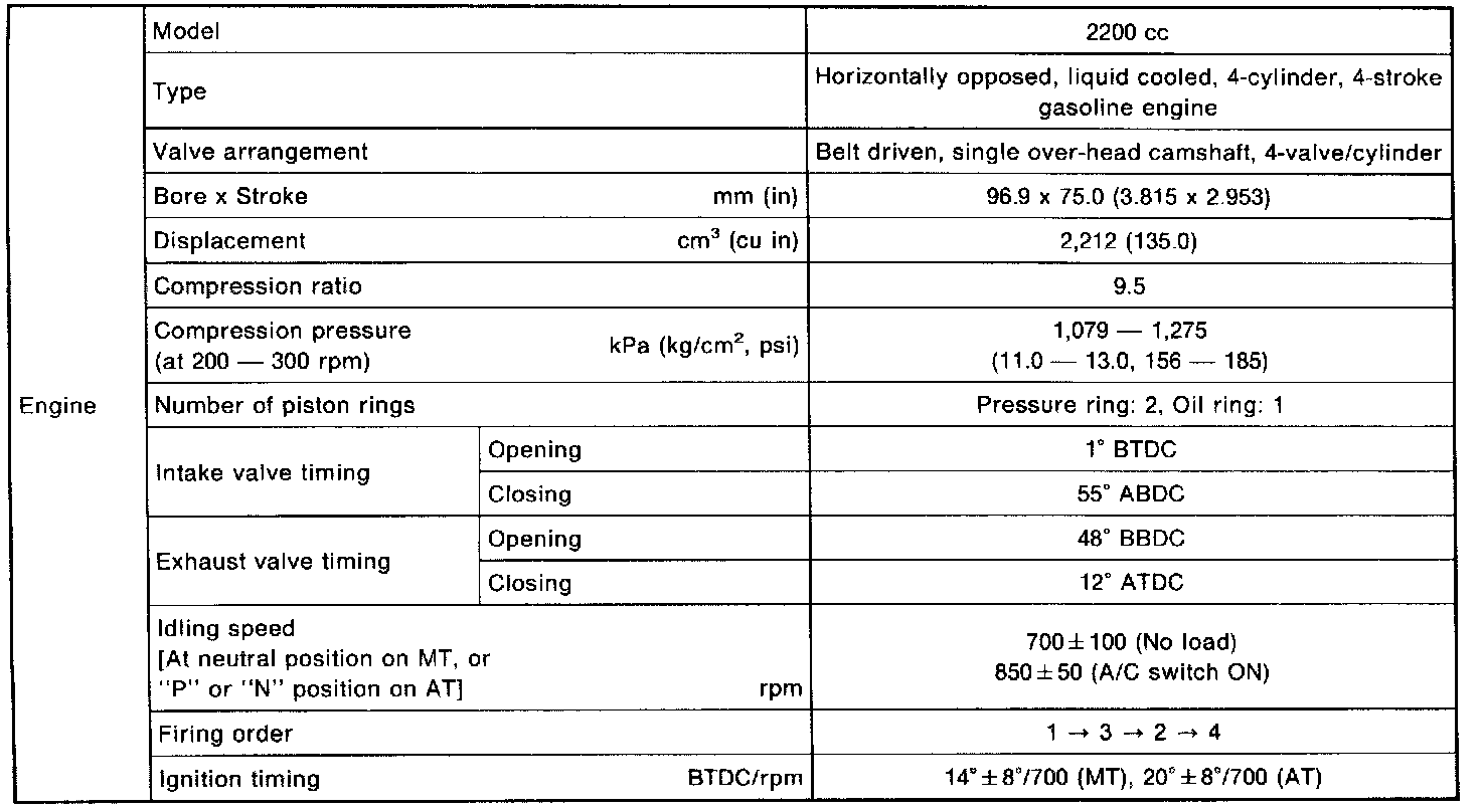 Impreza Outback F4-2.2L SOHC