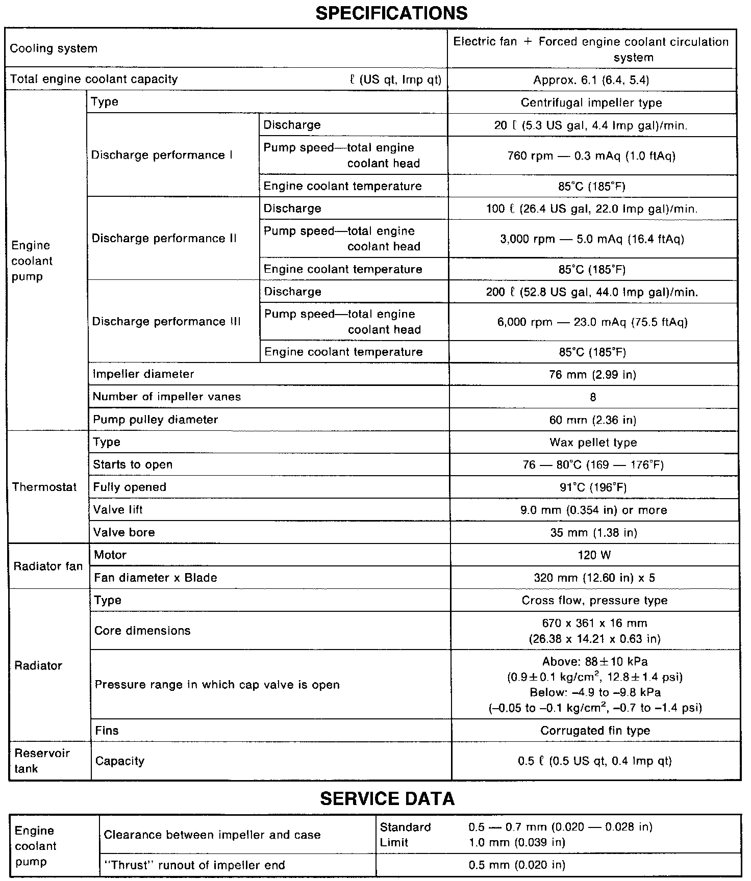 SPECIFICATIONS AND SERVICE DATA