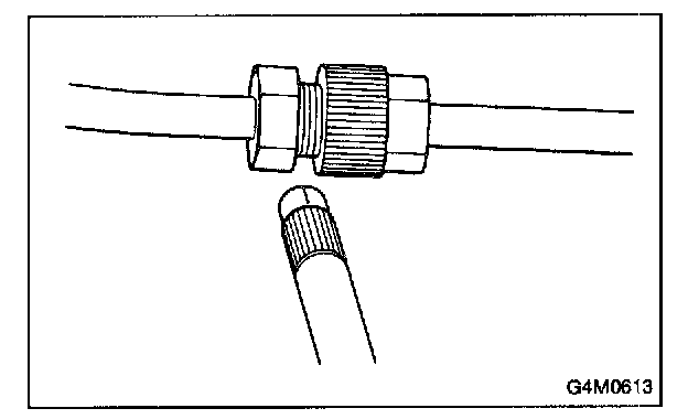 Visually inspect the inside of the service port caps. Make sure the rubber seal is in place on the inside of the caps. Disconnect the gauges from the vehicle and install the service port caps.