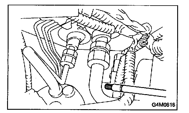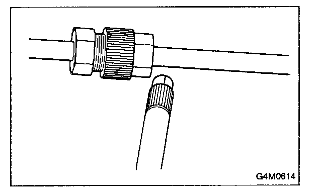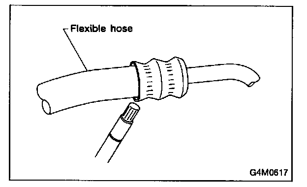 1. Visually inspect the rubber portions of the flexible hoses for cracking. Probe the rubber section, including the ends of any insulators or protectors which may cover sections of the rubber hose, and near the ends where the rubber meets the metal collar.