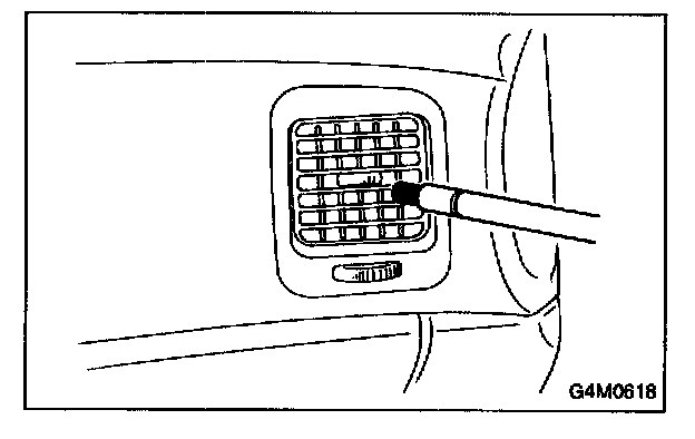 3. With the ignition key in the "ACC" position, run the blower on high speed for 1 minute, then turn the blower off. Place the probe in the center instrument panel vent, an turn the blower on low speed for 1 to 2 seconds, then turn the blower off. Leave the probe in the vent for at least 10 seconds.