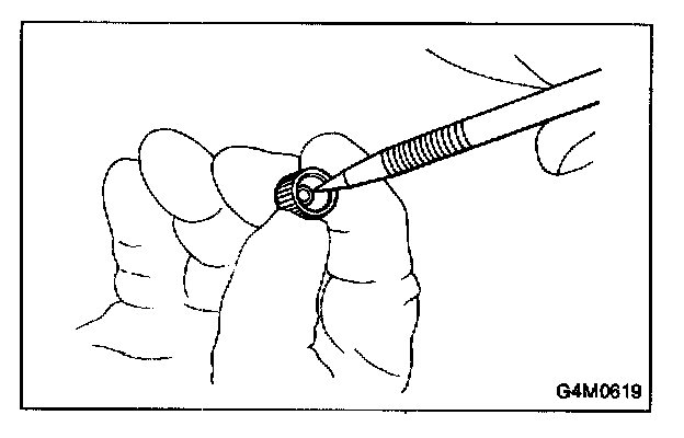 8. Check the compressor shaft seal by probing near the center of the compressor clutch pulley.