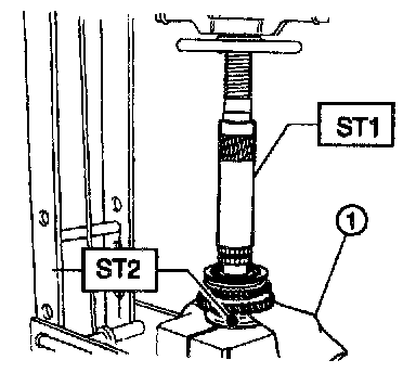 4) Install a set of roller bearings (42 x 74 x 40) onto the driven shaft using ST and press. ST 499277200 INSTALLER