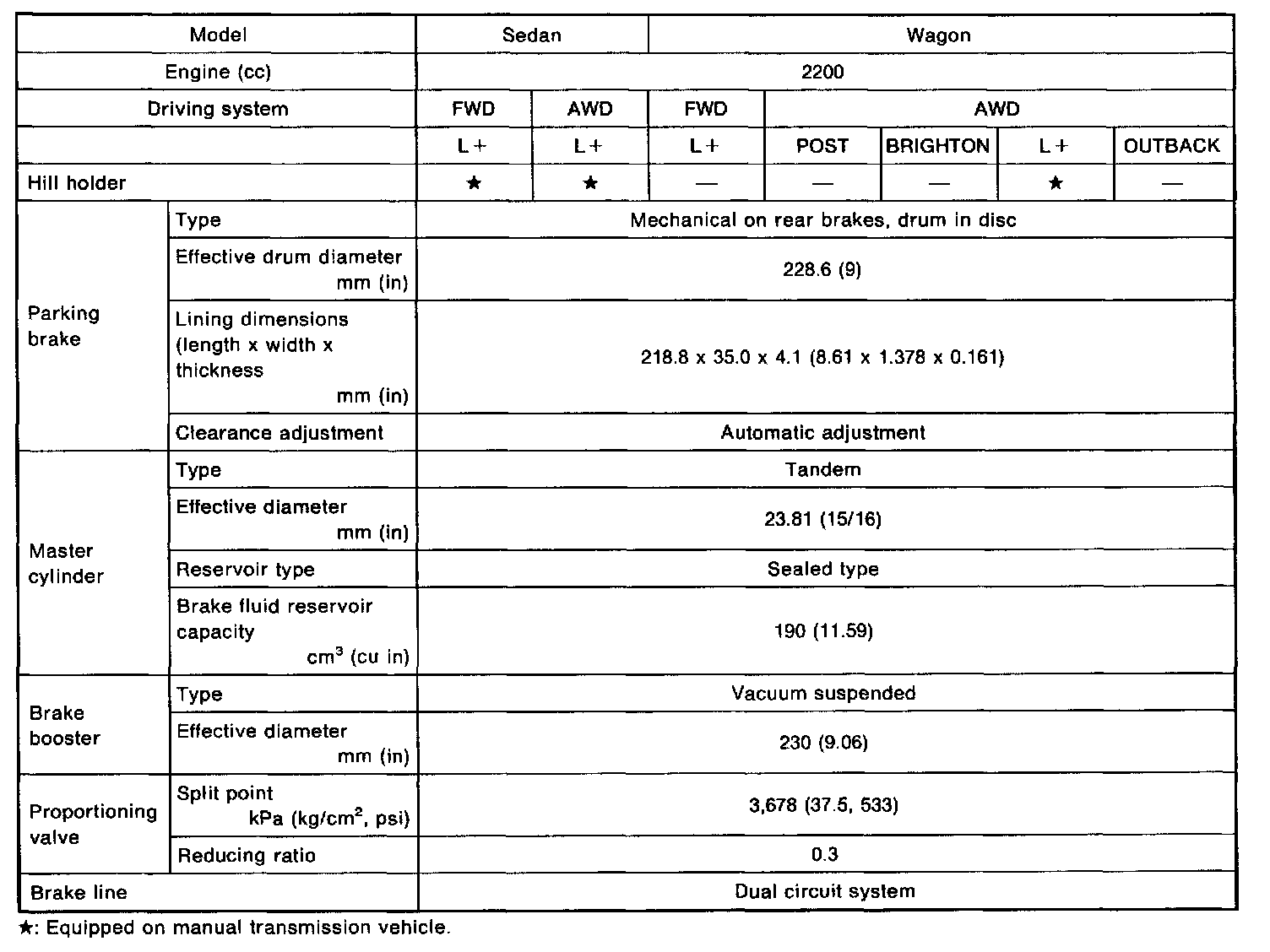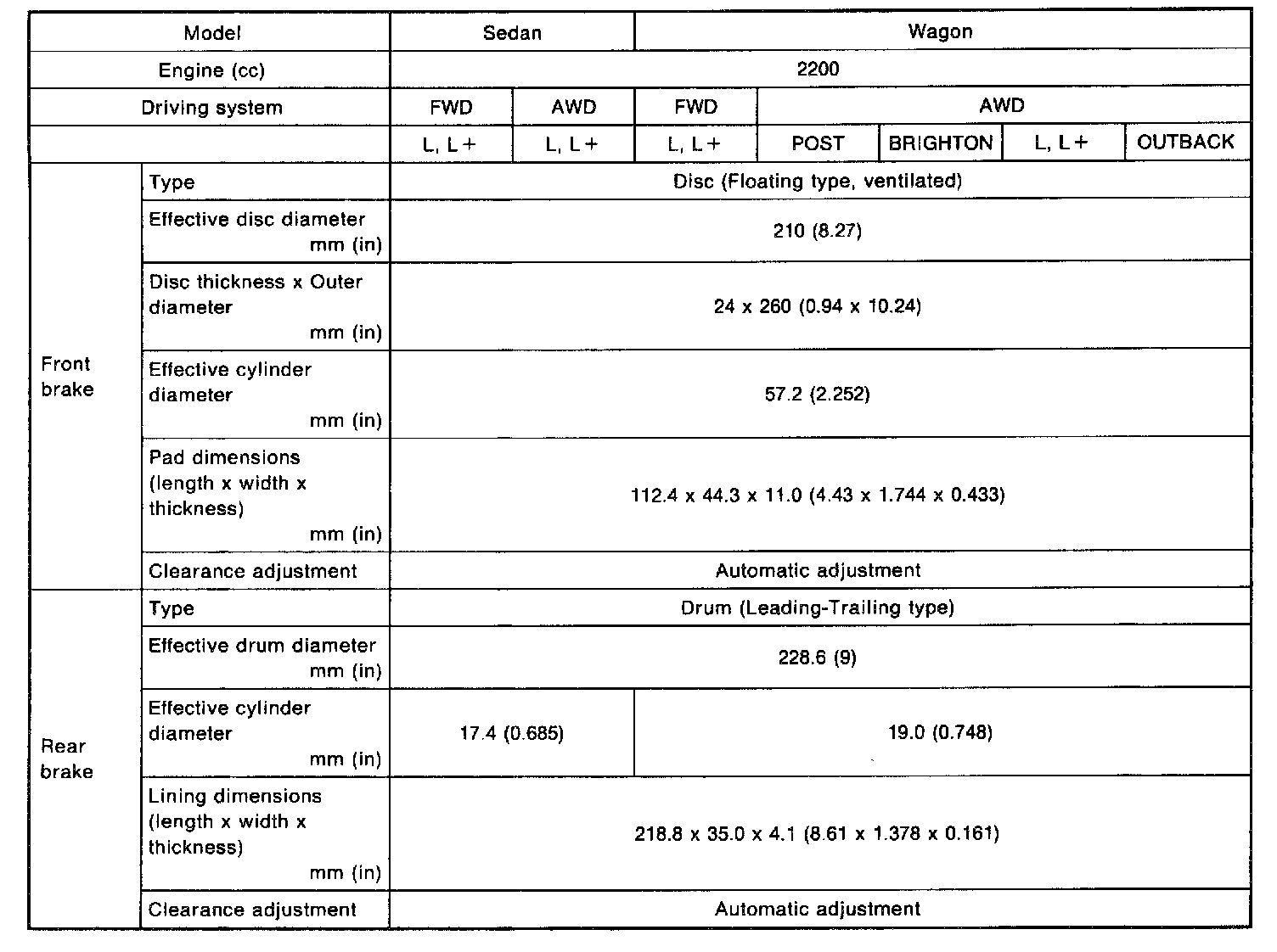 Outback [Legacy] AWD F4-2.2L SOHC