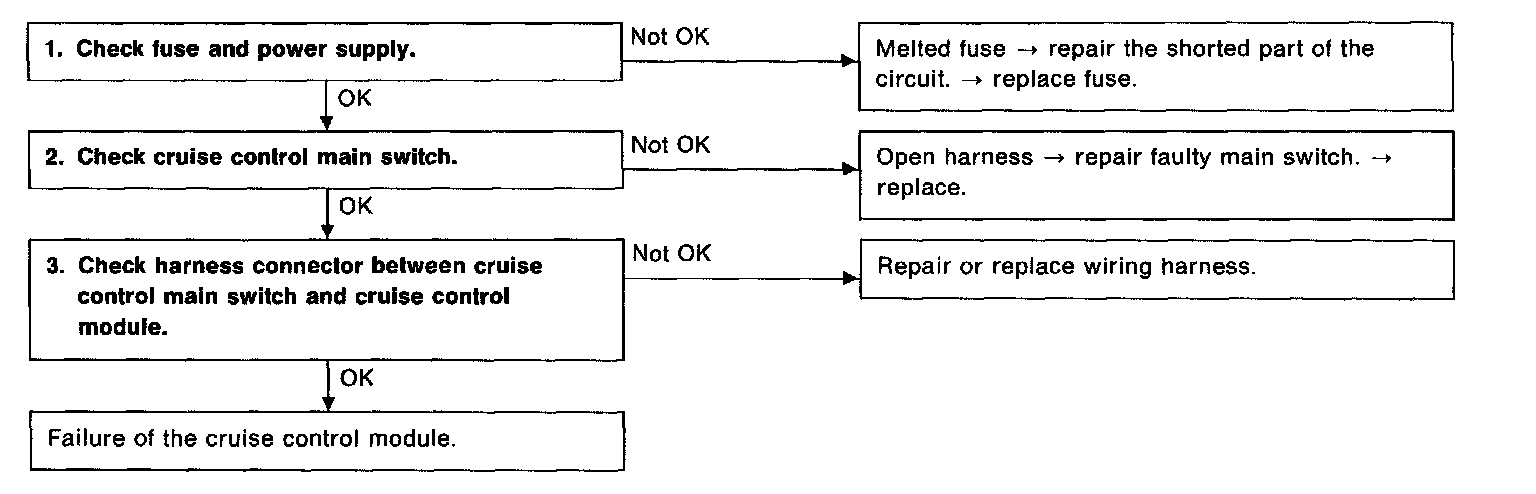 CHECK CRUISE CONTROL MAIN SWITCH.