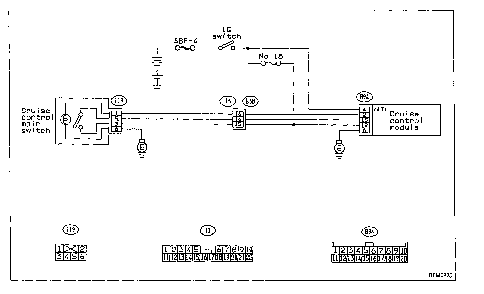 NOTE: When the main relay (built-in cruise control module) operates, the main switch circuit is in normal condition. The main relay operation can be checked by hearing the operation sounds.