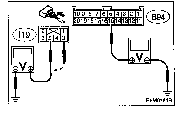4. Measure voltage between each terminal of cruise control main switch or cruise control module and body.