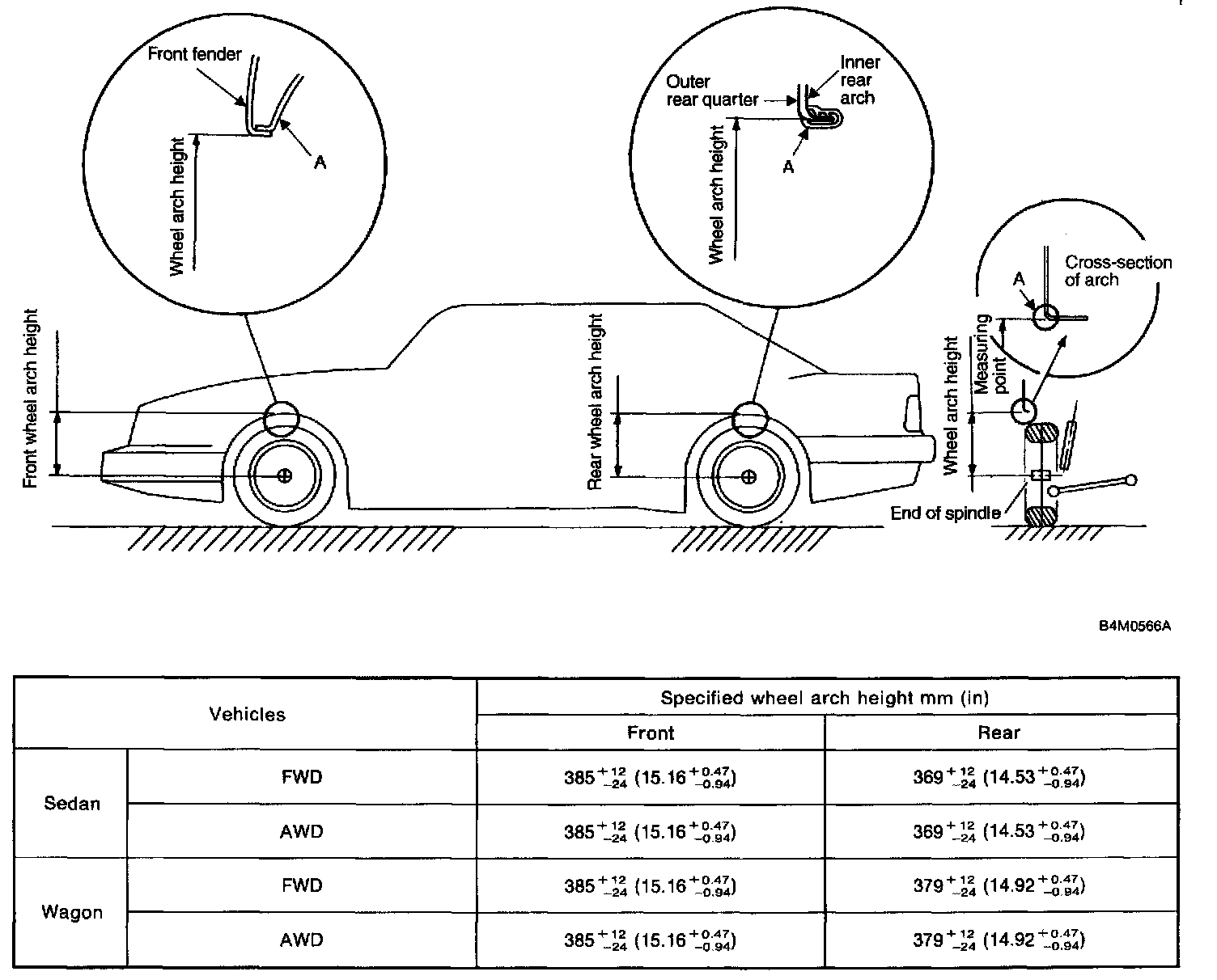 2) Set vehicle under "curb weight" conditions. (Empty luggage compartment, install spare tire, jack, service tools, and top up fuel tank.)