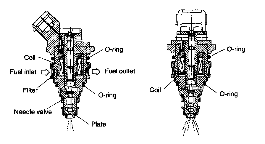- Since the injection opening, the lifted level of valve and the regulator-controlled fuel pressure are kept constant, the amount of fuel to be injected can be controlled only by the valve open signal from the ECM.