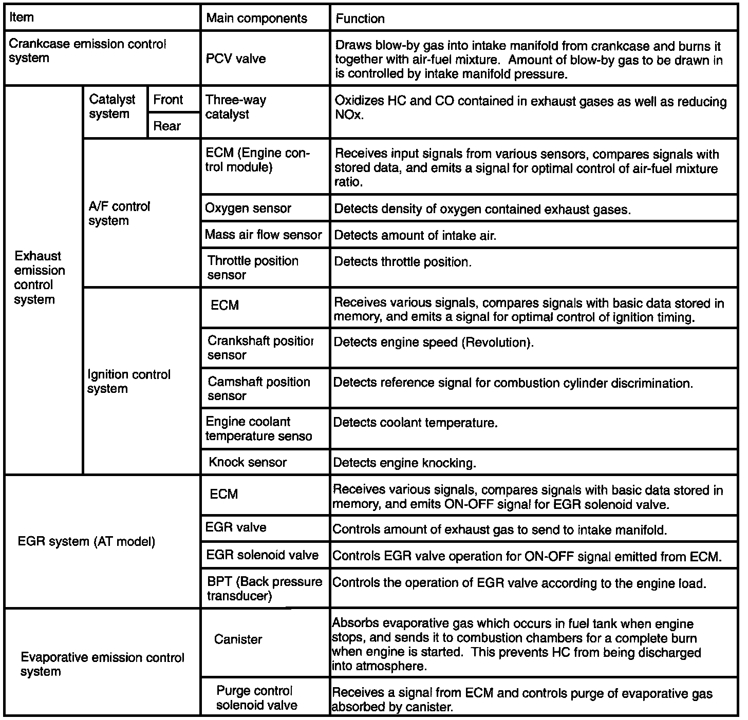 - Exhaust Gas Recirculation (EGR) System (A/T Model Only).