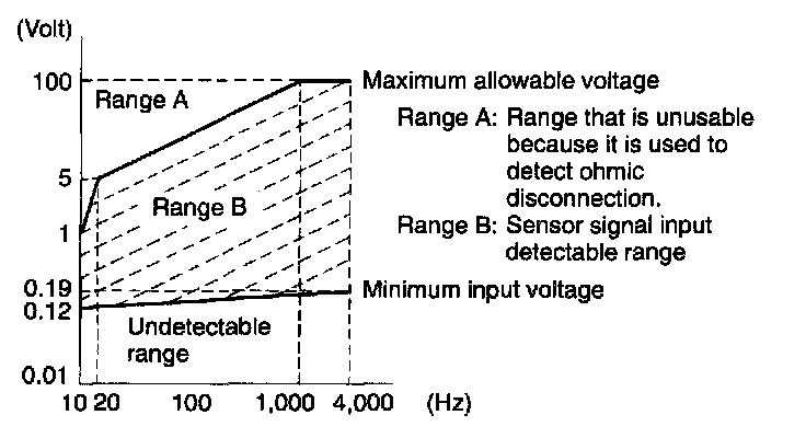 - This ABS control module detects open circuits by sending an electrical current through the sensor system. An upper limit is established with respect to the sensor signal input characteristics, and if an input value exceeds that limit it is considered a failure. Figure shows [a marginal level] a failure.