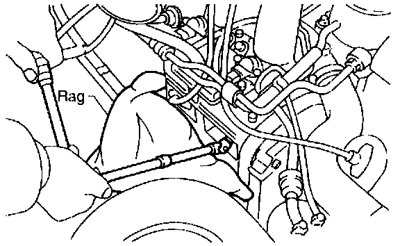 CAUTION: When removing spark plug, cover the ATF cooling pipes with a rag to prevent damage.