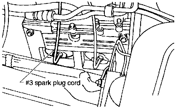 6) Remove #3 spark plug cord by pulling boot not cord itself.