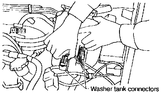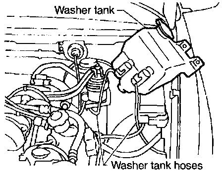CAUTION: Do not disconnect washer tank hoses as washer fluid will leak out from washer tank.