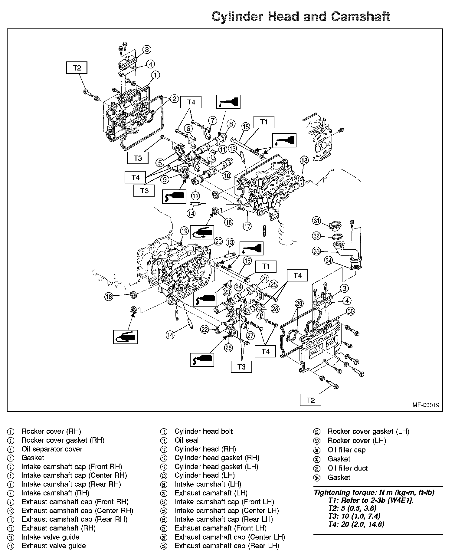 (2) Tighten all bolts to 29 Nm (3.0 kg-m, 22 ft-lb) in numerical sequence.